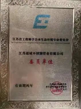 我公司董事长陈建华代表道成管业参加了江苏省工程师学会水生态环境专业委员会成立大会,我公司成功加入江苏省工程师学会水生态环境专业委员会。陈董事长代表不锈钢供水管道企业发言,以优质的不锈钢管材及管件保证用水安全,呼吁不锈钢管道生产企业以产品品质至上,围绕“用好管供好水”的理念,让越来越多的水务公司及消费者用上高品质的不锈钢产品,立志成为安全供水、健康用水、水生态文明建设的“传播者”,促进水生态环境质量的持续改善,为建设美丽中国、“水韵江苏”作出应有的贡献。